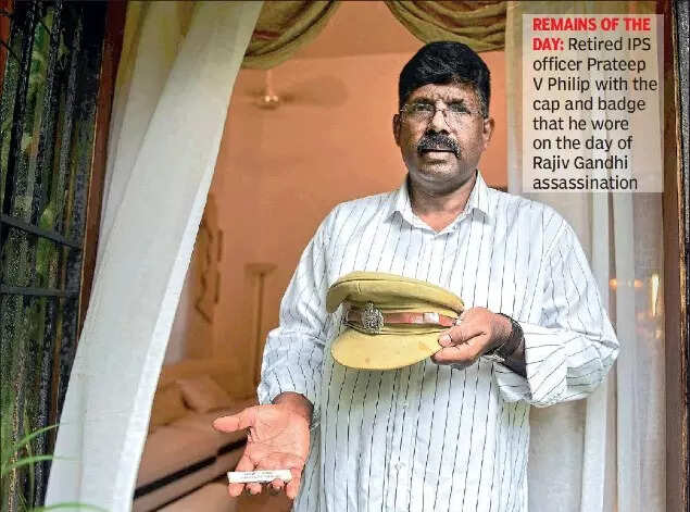 The glaring moment of Prateep V Philip’sthree decade -long police career is that he was barely three feet away when former Prime Minister Rajiv Gandhi was assassinated in Sriperumbudur on May 21, 1991. The IPS officer, who was part of Rajiv’s security detail at the venue, retired last week. With the Madras special court’s permission, he is allowed to keep the badge and bloodstained cap from the day for a month as remembrance. As the officer recollects the horrors of the night, he says he has got closure.