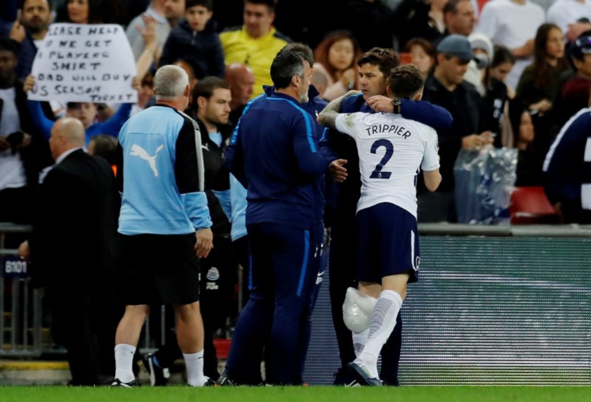 Soccer Football - Premier League - Tottenham Hotspur v Newcastle United - Wembley Stadium, London, Britain - May 9, 2018 Tottenham manager Mauricio Pochettino celebrates after the match with Kieran Trippier Action Images via Reuters/Andrew Couldridge