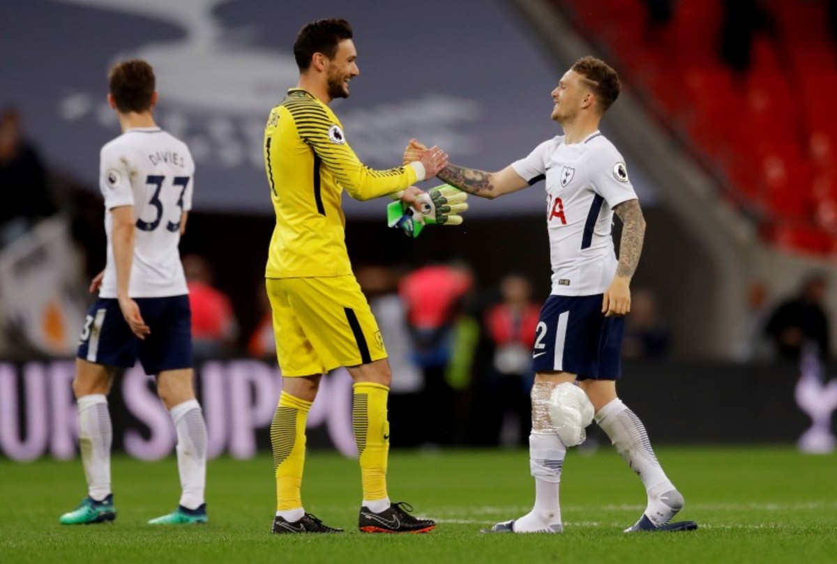 Soccer Football - Premier League - Tottenham Hotspur v Newcastle United - Wembley Stadium, London, Britain - May 9, 2018 Tottenham's Erik Lamela and Hugo Lloris celebrate after the match Action Images via Reuters/Andrew Couldridge