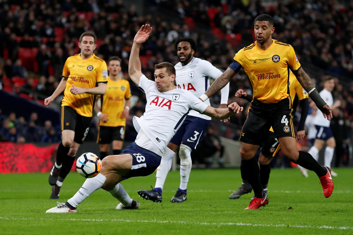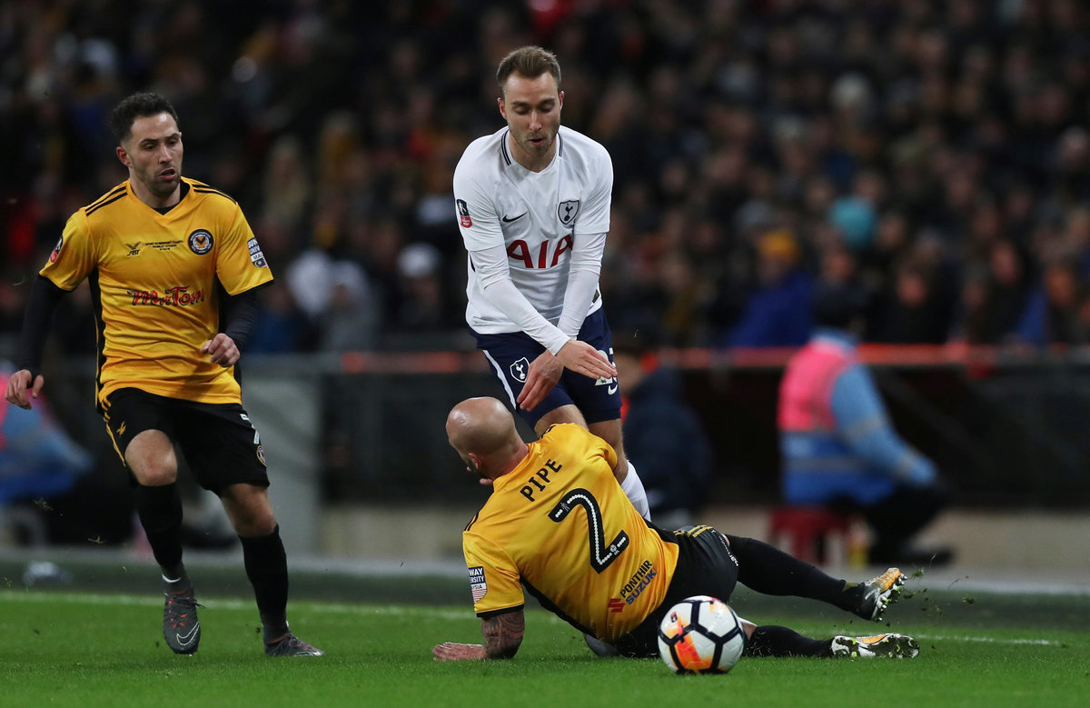 Soccer Football - FA Cup Fourth Round Replay - Tottenham Hotspur vs Newport County - Wembley Stadium, London, Britain - February 7, 2018 Newport County's David Pipe acknowledges the fans after the match REUTERS/Eddie KeoghSoccer Football - FA Cup Fourth Round Replay - Tottenham Hotspur vs Newport County - Wembley Stadium, London, Britain - February 7, 2018 Newport County manager Mike Flynn applauds fans after the match REUTERS/Eddie KeoghSoccer Football - FA Cup Fourth Round Replay - Tottenham Hotspur vs Newport County - Wembley Stadium, London, Britain - February 7, 2018 Tottenham’s Fernando Llorente and Newport County's Mickey Demetriou after the match Action Images via Reuters/Peter CziborraSoccer Football - FA Cup Fourth Round Replay - Tottenham Hotspur vs Newport County - Wembley Stadium, London, Britain - February 7, 2018 Newport County manager Mike Flynn shakes hands with referee Stuart Attwell after the match Action Images via Reuters/Peter CziborraSoccer Football - FA Cup Fourth Round Replay - Tottenham Hotspur vs Newport County - Wembley Stadium, London, Britain - February 7, 2018 Tottenham's Dele Alli in action with Newport County's Shawn McCoulsky Action Images via Reuters/Peter CziborraSoccer Football - FA Cup Fourth Round Replay - Tottenham Hotspur vs Newport County - Wembley Stadium, London, Britain - February 7, 2018 Tottenham's Dele Alli looks on as his shot hits the crossbar Action Images via Reuters/Peter CziborraSoccer Football - FA Cup Fourth Round Replay - Tottenham Hotspur vs Newport County - Wembley Stadium, London, Britain - February 7, 2018 Tottenham's Michel Vorm punches clear of Newport County's Scot Bennett REUTERS/Eddie KeoghSoccer Football - FA Cup Fourth Round Replay - Tottenham Hotspur vs Newport County - Wembley Stadium, London, Britain - February 7, 2018 Newport County's Joss Labadie in action with Tottenham’s Juan Foyth and Serge Aurier REUTERS/Eddie KeoghSoccer Football - FA Cup Fourth Round Replay - Tottenham Hotspur vs Newport County - Wembley Stadium, London, Britain - February 7, 2018 Tottenham's Dele Alli shoots against the crossbar Action Images via Reuters/Peter CziborraSoccer Football - FA Cup Fourth Round Replay - Tottenham Hotspur vs Newport County - Wembley Stadium, London, Britain - February 7, 2018 Tottenham's Christian Eriksen is fouled by Newport County's David Pipe Action Images via Reuters/Peter CziborraSoccer Football - FA Cup Fourth Round Replay - Tottenham Hotspur vs Newport County - Wembley Stadium, London, Britain - February 7, 2018 Tottenham’s Fernando Llorente shoots wide Action Images via Reuters/Peter CziborraSoccer Football - FA Cup Fourth Round Replay - Tottenham Hotspur vs Newport County - Wembley Stadium, London, Britain - February 7, 2018 Tottenham's Son Heung-min is congratulated by manager Mauricio Pochettino as he is substituted REUTERS/Eddie KeoghSoccer Football - FA Cup Fourth Round Replay - Tottenham Hotspur vs Newport County - Wembley Stadium, London, Britain - February 7, 2018 Tottenham's Erik Lamela scores their second goal REUTERS/Eddie KeoghSoccer Football - FA Cup Fourth Round Replay - Tottenham Hotspur vs Newport County - Wembley Stadium, London, Britain - February 7, 2018 Tottenham's Moussa Sissoko in action with Newport County's Scot Bennett and Joss Labadie REUTERS/Eddie KeoghSoccer Football - FA Cup Fourth Round Replay - Tottenham Hotspur vs Newport County - Wembley Stadium, London, Britain - February 7, 2018 Tottenham’s Fernando Llorente misses a chance to score Action Images via Reuters/Peter CziborraSoccer Football - FA Cup Fourth Round Replay - Tottenham Hotspur vs Newport County - Wembley Stadium, London, Britain - February 7, 2018 Tottenham's Christian Eriksen is fouled by Newport County's David Pipe Action Images via Reuters/Peter Cziborra