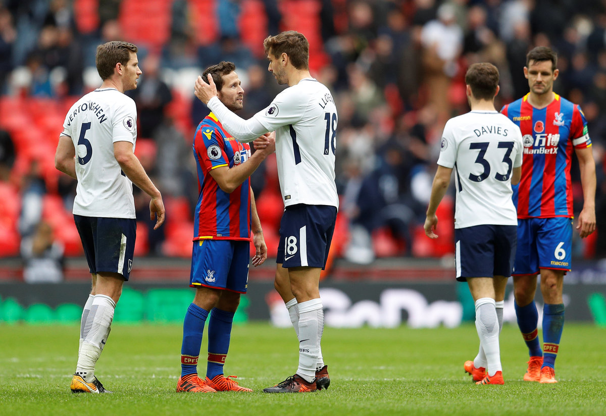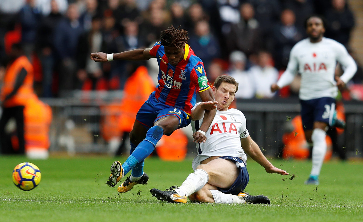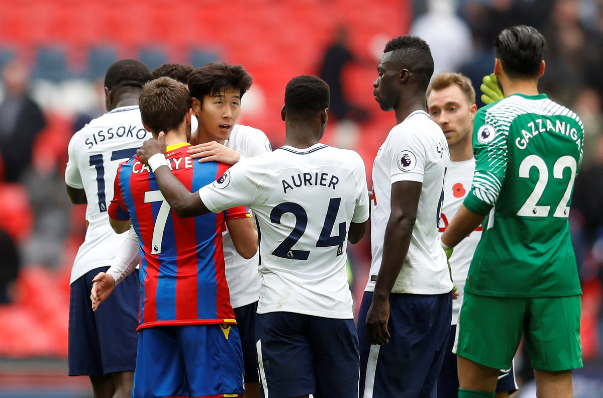 Soccer Football - Premier League - Tottenham Hotspur vs Crystal Palace - Wembley Stadium, London, Britain - November 5, 2017 Crystal Palace's Joel Ward in action with Tottenham's Harry Kane Action Images via Reuters/Andrew Couldridge Soccer Football - Premier League - Tottenham Hotspur vs Crystal Palace - Wembley Stadium, London, Britain - November 5, 2017 Tottenham's Jan Vertonghen in action with Crystal Palace's Wilfried Zaha REUTERS/Peter Nicholls Soccer Football - Premier League - Tottenham Hotspur vs Crystal Palace - Wembley Stadium, London, Britain - November 5, 2017 Crystal Palace's Wilfried Zaha with referee Kevin Friend REUTERS/Peter Nicholls Soccer Football - Premier League - Tottenham Hotspur vs Crystal Palace - Wembley Stadium, London, Britain - November 5, 2017 Crystal Palace's Andros Townsend in action. REUTERS/Peter Nicholls Soccer Football - Premier League - Tottenham Hotspur vs Crystal Palace - Wembley Stadium, London, Britain - November 5, 2017 Crystal Palace's Mamadou Sakho in action with Tottenham’s Fernando Llorente. Action Images via Reuters/Andrew Couldridge Soccer Football - Premier League - Tottenham Hotspur vs Crystal Palace - Wembley Stadium, London, Britain - November 5, 2017 Crystal Palace's Mamadou Sakho in action with Tottenham's Serge Aurier . REUTERS/Peter Nicholls Soccer Football - Premier League - Tottenham Hotspur vs Crystal Palace - Wembley Stadium, London, Britain - November 5, 2017 Tottenham's Son Heung-min with Crystal Palace's Yohan Cabaye at the end of the match. REUTERS/Peter Nicholls Soccer Football - Premier League - Tottenham Hotspur vs Crystal Palace - Wembley Stadium, London, Britain - November 5, 2017 Crystal Palace's Yohan Cabaye and Tottenham’s Fernando Llorente at the end of the match. REUTERS/Peter Nicholls Soccer Football - Premier League - Tottenham Hotspur vs Crystal Palace - Wembley Stadium, London, Britain - November 5, 2017 Crystal Palace manager Roy Hodgson and Tottenham manager Mauricio Pochettino REUTERS/Peter Nicholls EDITORIAL USE ONLY. No use with unauthorized audio, video, data, fixture lists, club/league logos or "live" services. Online in-match use limited to 75 images, no video emulation. No use in betting, games or single club/league/player publications. Please contact your account representative for further details.