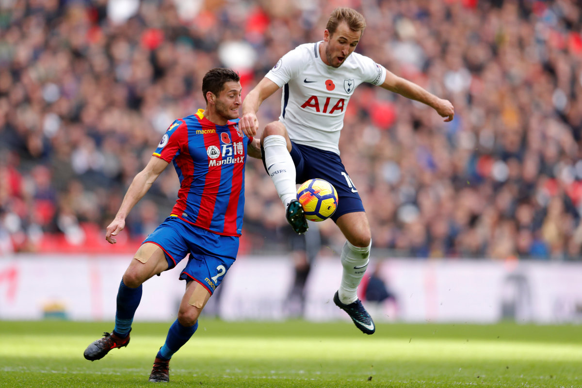 Soccer Football - Premier League - Tottenham Hotspur vs Crystal Palace - Wembley Stadium, London, Britain - November 5, 2017 Crystal Palace's Joel Ward in action with Tottenham's Harry Kane . REUTERS/Peter Nicholls