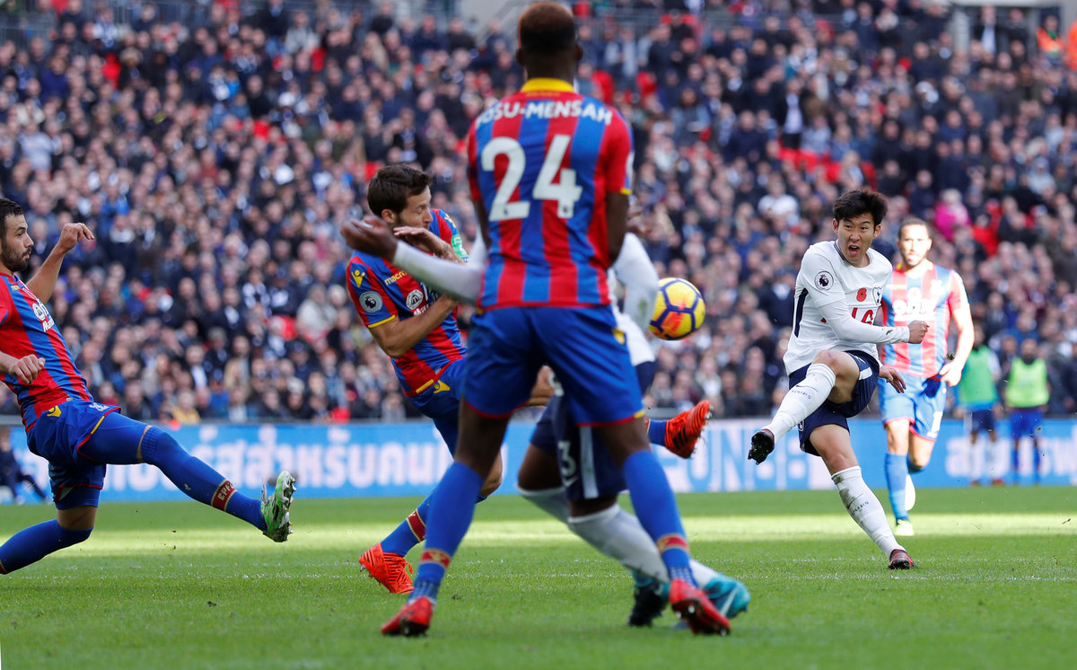 Soccer Football - Premier League - Tottenham Hotspur vs Crystal Palace - Wembley Stadium, London, Britain - November 5, 2017 Tottenham's Son Heung-min scores their first goal Action Images via Reuters/Andrew Couldridge