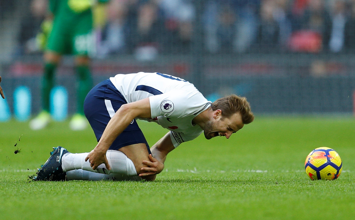 Soccer Football - Premier League - Tottenham Hotspur vs Crystal Palace - Wembley Stadium, London, Britain - November 5, 2017 Tottenham's Harry Kane reacts after sustaining an injury. REUTERS/Peter Nicholls