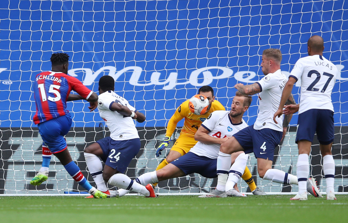 Tottenham's tempo dropped at the start of the second half and Palace equalised in the 53rd minute when they failed to deal with a corner and the ball fell for Schlupp who fired high through a mass of players into the roof of the net.