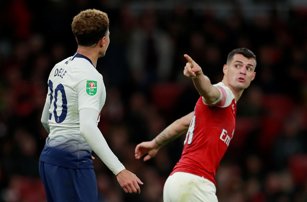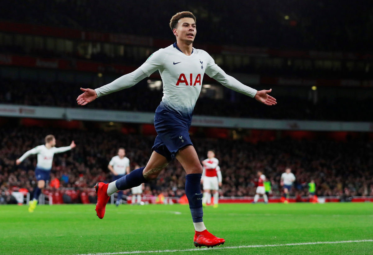 Shortly afterwards Alli appeared to be struck by a plastic bottle thrown from the Arsenal fans but it did not dampen Tottenham's night as they took a step towards a first trophy under Manchester United target Mauricio Pochettino.