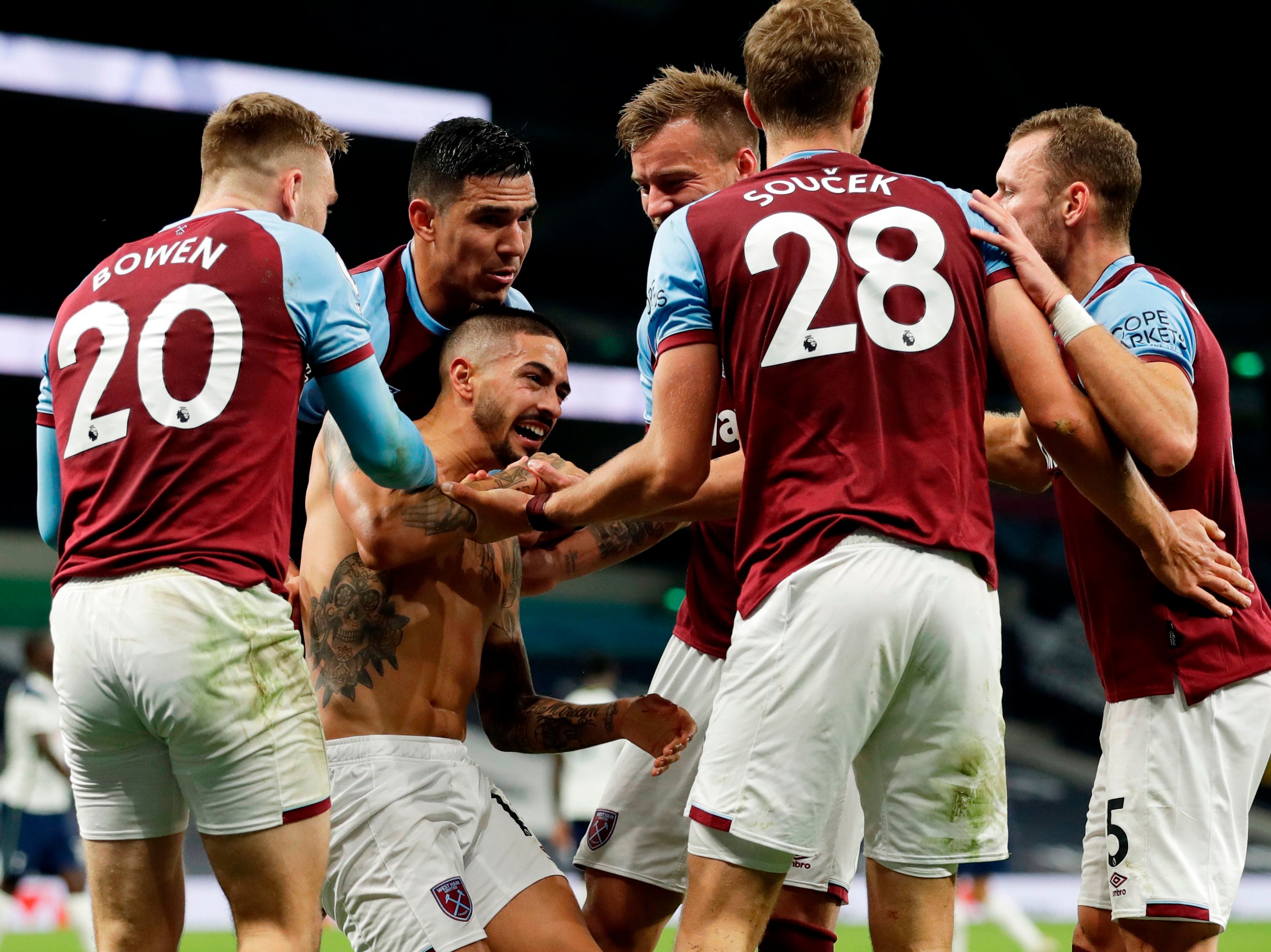 Having been second best to Tottenham Hotspur for 82 minutes, West Ham staged one of the most outlandish and unpredictable comebacks to steal a point. The bedlam-rousing goal was worthy of the moment: Manuel Lanzini, in the final minute of injury time, running onto a bouncing ball with bodies in front of him and striking a swerving 25-yeard effort that clipped the point of post and bar before bouncing over the line and into the net. The celebrations from all in claret and blue filled the empty 60,000-seater stadium.