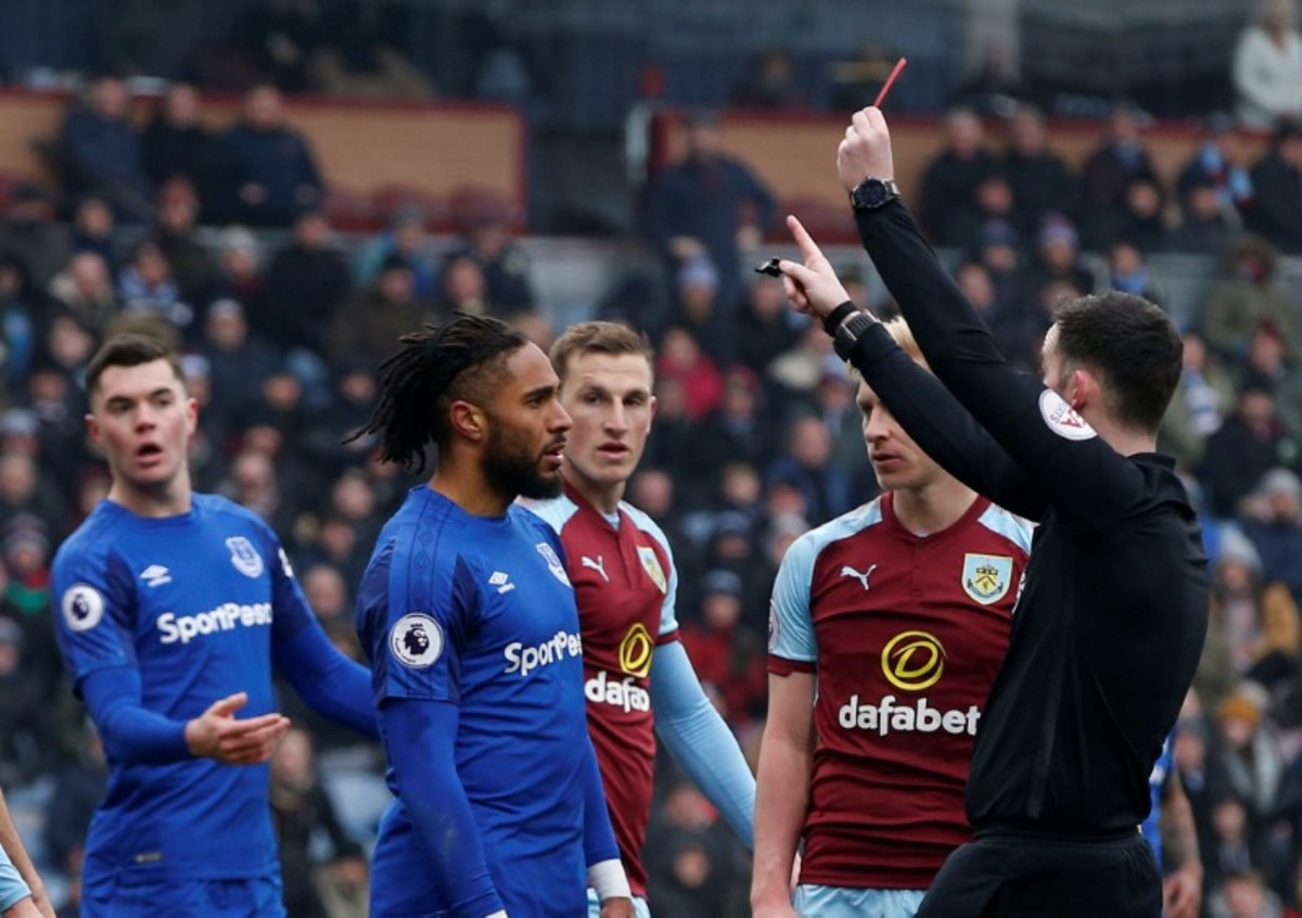 Everton captain Ashley Williams was sent off four minutes from the end for a wild swipe at Barnes.