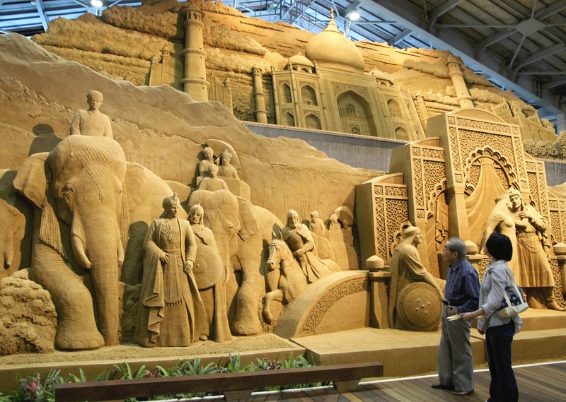 The Tottori Sand Dunes' Sand Museum, located in the dunes' eastern side, currently displays 21 sculptures of some of South Asia's iconic sights and people.