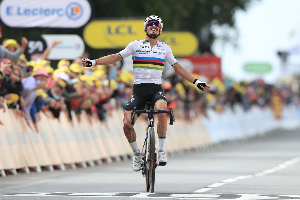 “It’s a scenario I imagined and I really wanted to do it but of course I had to do it and it’s really super,” Alaphilippe said. “My team did a great job and controlled it all day. At the end I was caught in a crash but we got back and I really had to make the last climb. I had to get rid of the sprinters, it wasn’t easy but I gave my best and that was it.”