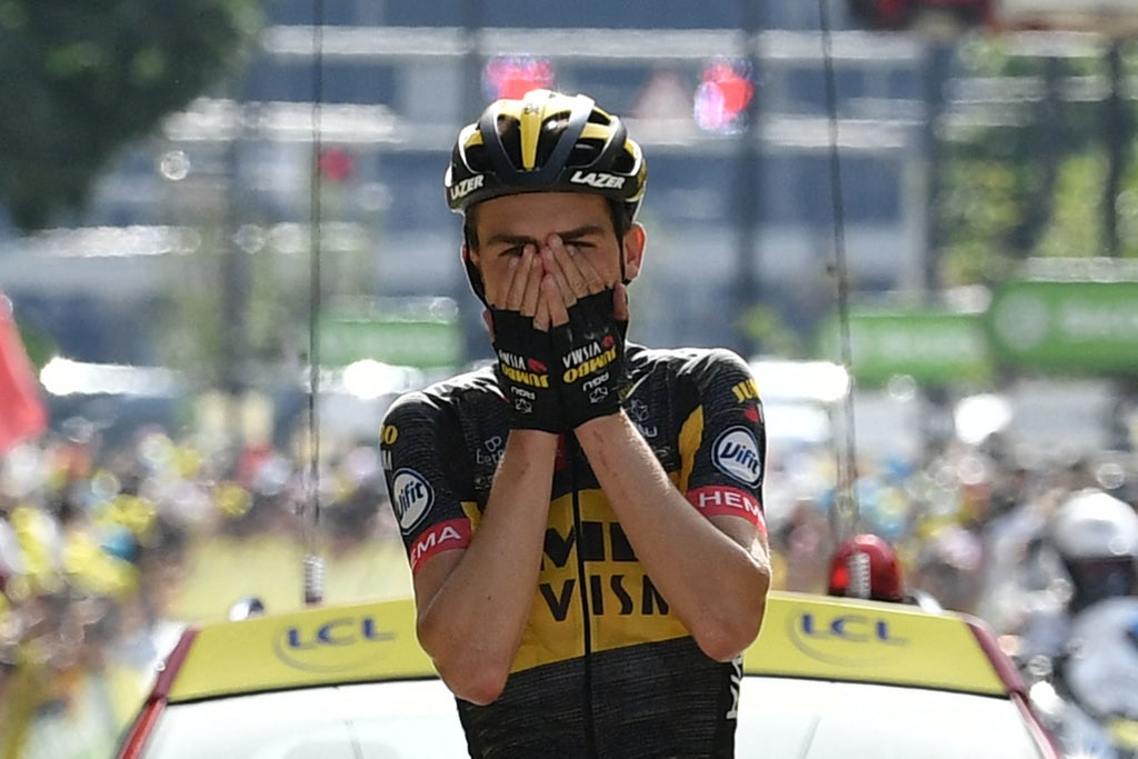 Jumbo-Visma’s Kuss broke away early and held on to complete his solo attack in Andorra, while behind him Ineos’s Richard Carapaz tried and failed to attack Pogacar on the final climb.