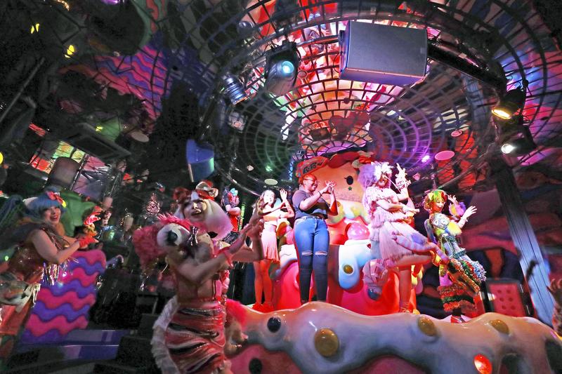 Kawaii Monster Cafe Harajuku opened in 2015 ahead of the Tokyo Games, which is expected to attract a large number of foreign visitors to Japan. Located in Harajuku, which is bustling with people during the day, it features a three-hour night show starting from 7:30 p.m. on Tuesdays to Fridays. The performances vary each day, in a bid to draw customers.
