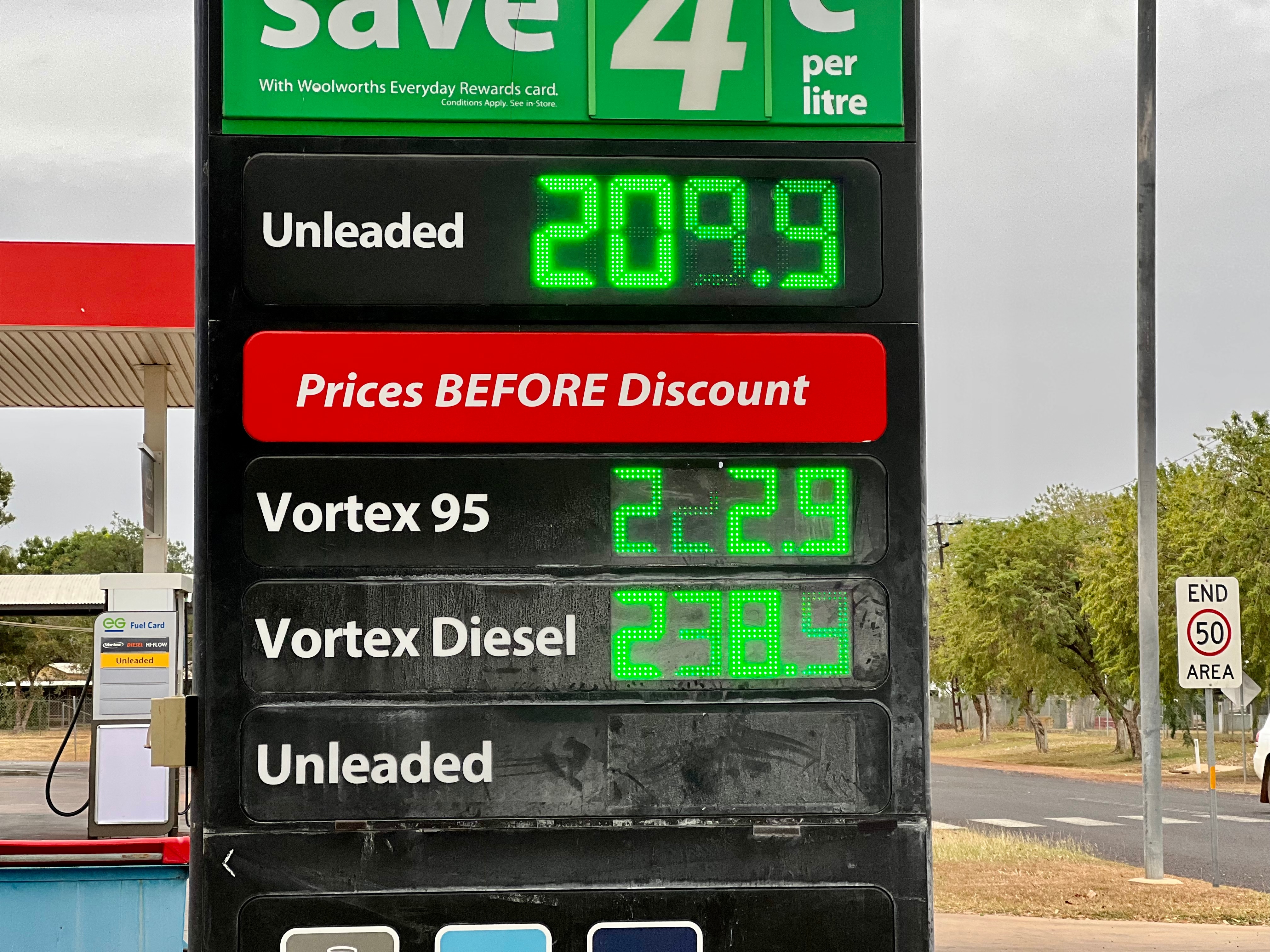 Australian roads, especially in the sunny north, are teeming with young travellers and flocks of grey nomads towing caravans and they are all paying eye-watering prices for fuel.