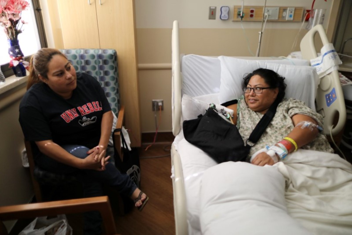 The Bautista sisters are home again in Fontana, California. Paola, who had surgery hours after the shooting, faces at least one more operation. Daisy is looking after her.