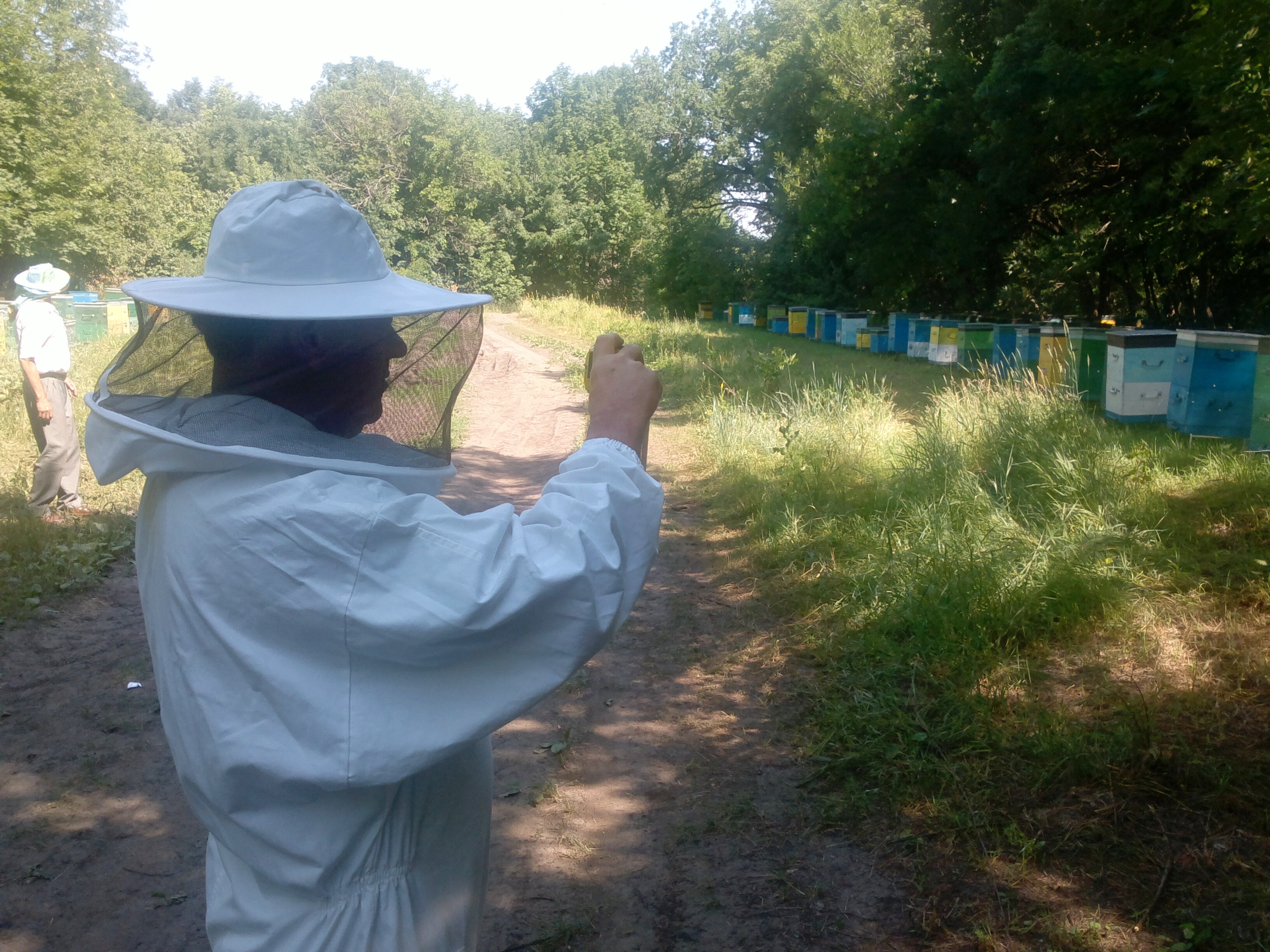 A world away from Europe, the avid apiarist tends to his beehives as life goes on.