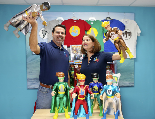 MIAMI _ Inspired by their sons, Charlie, 8, and Jamie, 6, and the lack of thoughtful superhero-related content available for young boys, Ed and Crissi Boland created Whimzy Entertainment and its first product line, the HeroBoys. The Miami startup's signature item is an 18-inch plush-and-plastic hero, and related comic books provide complementary superhero stories for young customers.