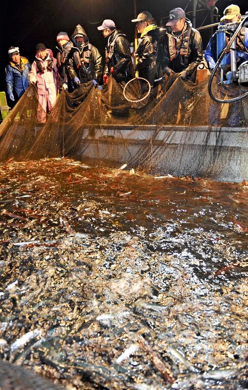 In early March, this reporter was offered a ride on a boat heading out for fixed-net fishing. The job involved a "parent" vessel and "child" vessel working in tandem.