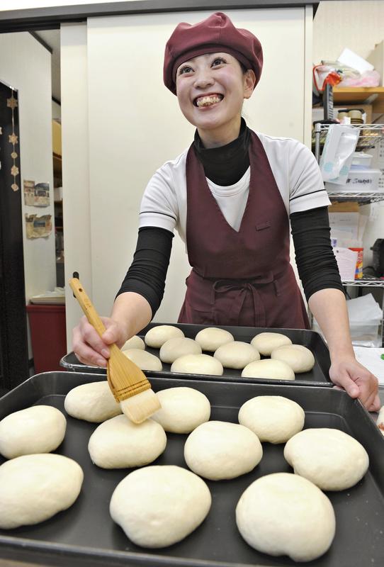 Kobayashi arrives early each morning, shapes the bread dough and bakes it in a large electric oven. After she opens the bakery at 10 a.m., she bakes more bread to be supplied to supermarkets in Toyama, a hospital and other facilities, in addition to that sold at her bakery.