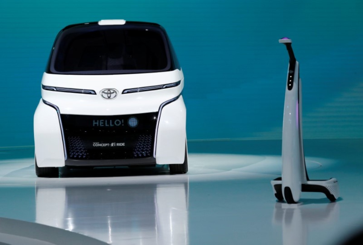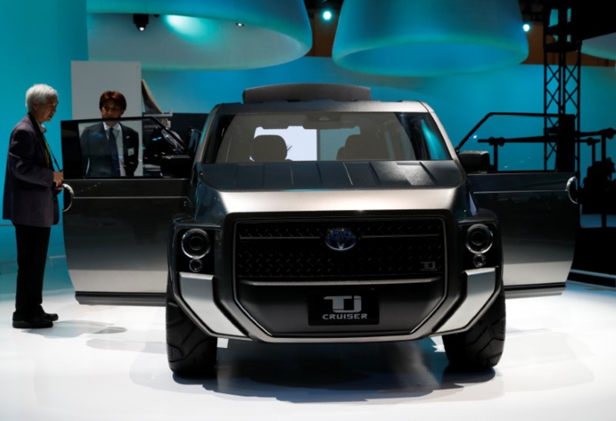 Toyota Motor displays Wonder-Capsule Concept during media preview of the 45th Tokyo Motor Show in Tokyo, Japan October 25, 2017. REUTERS/Kim Kyung-HoonToyota Motor Corp. displays the company's Concept-i Ride series during media preview of the 45th Tokyo Motor Show in Tokyo, Japan October 25, 2017. REUTERS/Kim Kyung-HoonToyota Motor displays TJ Cruiser during media preview of the 45th Tokyo Motor Show in Tokyo, Japan October 25, 2017. REUTERS/Kim Kyung-HoonToyota Motor Corp. Executive Vice President Didier Leroy presents the company's Concept-i series during media preview of the 45th Tokyo Motor Show in Tokyo, Japan October 25, 2017. REUTERS/Toru HanaiLogo of the Toyota Motor GAZOO Racing is displayed during media preview of the 45th Tokyo Motor Show in Tokyo, Japan October 25, 2017. REUTERS/Kim Kyung-HoonToyota Motor GAZOO Racing HV Sports concept is displayed during media preview of the 45th Tokyo Motor Show in Tokyo, Japan October 25, 2017. REUTERS/Kim Kyung-HoonToyota Motor Corp. displays the company's Fine Comfort Ride during media preview of the 45th Tokyo Motor Show in Tokyo, Japan October 25, 2017. REUTERS/Kim Kyung-HoonToyota Motor Corp. displays the company's Concept-i Ride series during media preview of the 45th Tokyo Motor Show in Tokyo, Japan October 25, 2017. REUTERS/Kim Kyung-HoonToyota Motor Corp. displays the company's Concept-i Ride during media preview of the 45th Tokyo Motor Show in Tokyo, Japan October 25, 2017. REUTERS/Kim Kyung-HoonToyota Motor Corp. unveils the company's Concept-i Ride (L) and Concept-i Walk during media preview of the 45th Tokyo Motor Show in Tokyo, Japan October 25, 2017. REUTERS/Kim Kyung-Hoon
