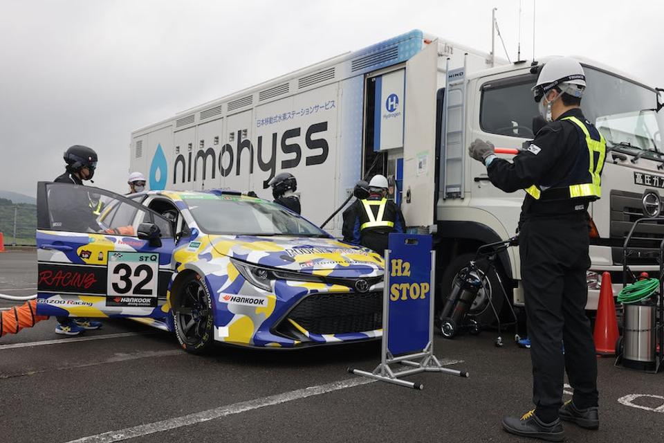 Toyota, which up until now, has resisted the industry trend to introduce electric cars, is now touting hydrogen-engined cars. Last weekend, in Japan’s only full-day race, the Fuji 24 Hours, Japan’s biggest automaker entered a specially prepared hydrogen-engine powered Corolla Sport race car, driven in part by company CEO and avid amateur racer, Akio Toyoda, and FIA World Endurance Championship legend Kamui Kobayashi.