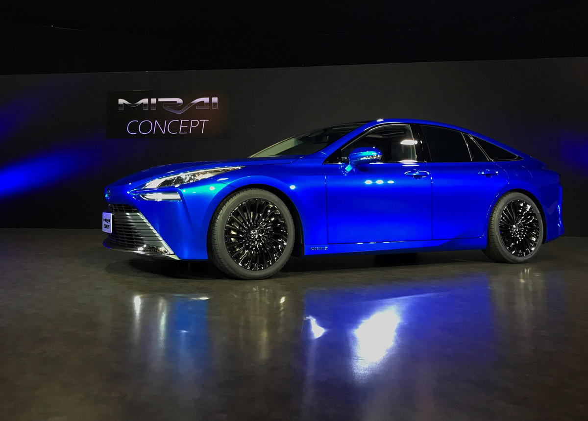 Its sporty redesign with longer wheelbase and lower-slung chassis is a marked departure from the first-generation Mirai, which looks like a bulked-up Prius hybrid.