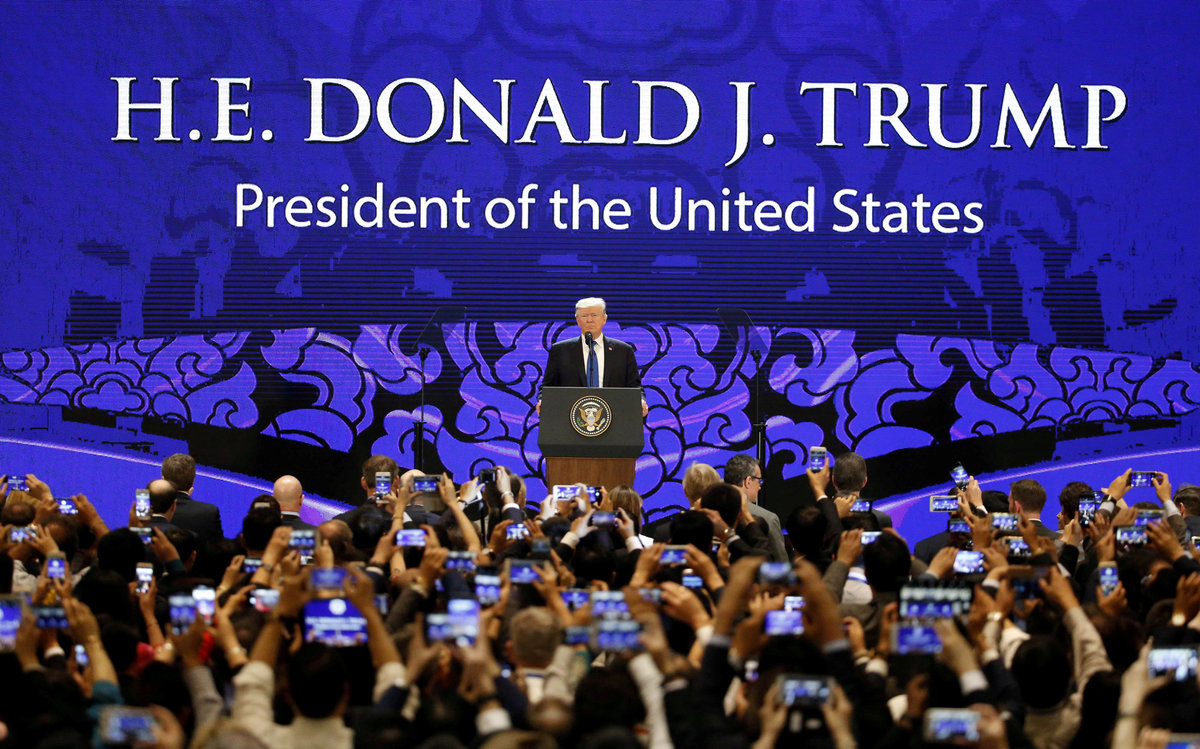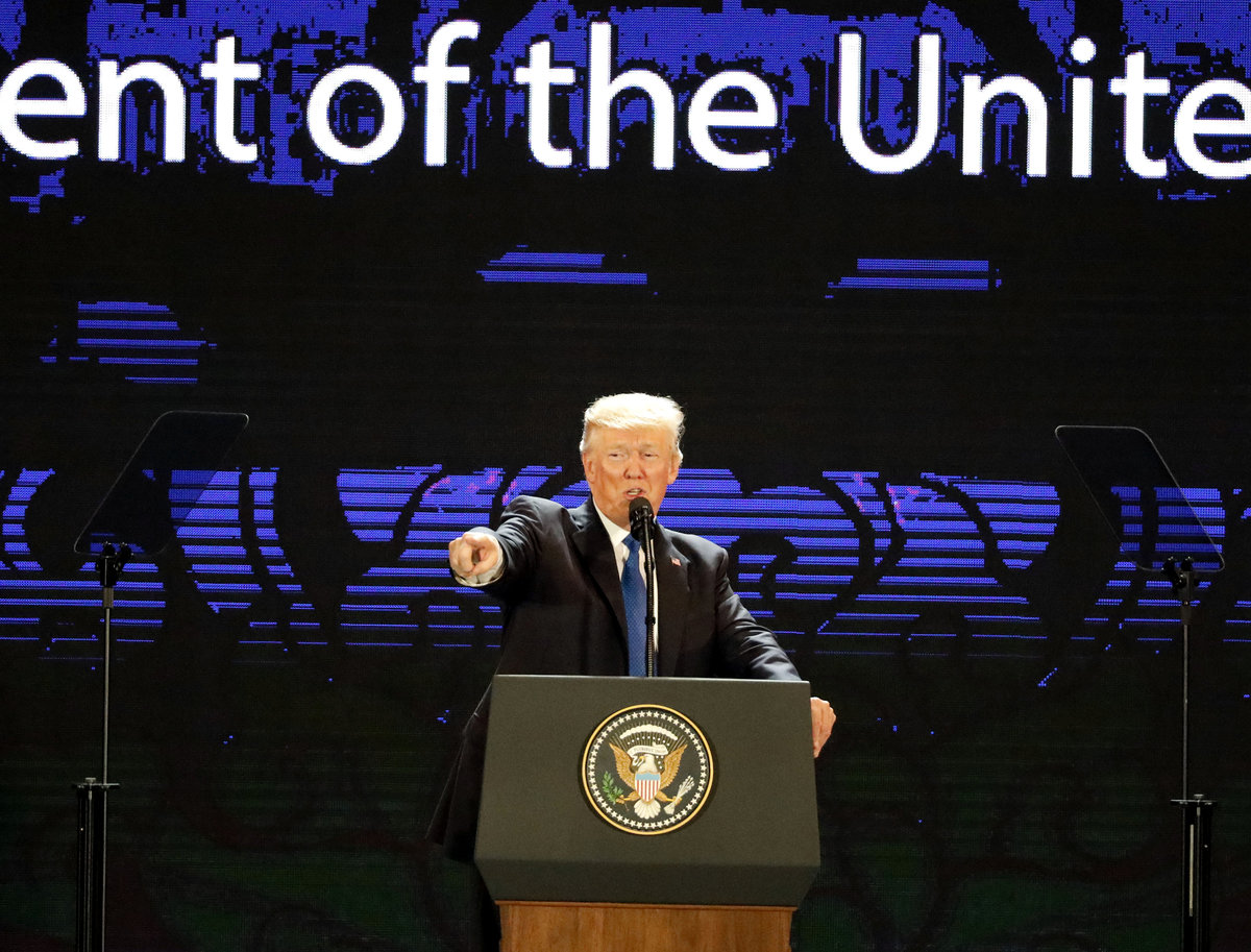 U.S. President Donald Trump speaks on the final day of the APEC CEO Summit ahead of the Asia-Pacific Economic Cooperation (APEC) leaders summit in Danang, Vietnam, November 10, 2017. REUTERS/Nyein Chan Naing/Pool