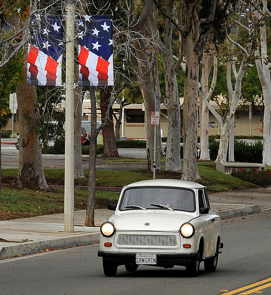 "I never expected such a car here in California," said Kay Dietzel, who remembered Trabants pouring into her country after the Berlin Wall was razed in 1989.