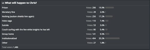 Meanwhile, the users of Kiwi Farms are voting on what her fate will be — while misgendering her, obviously.
