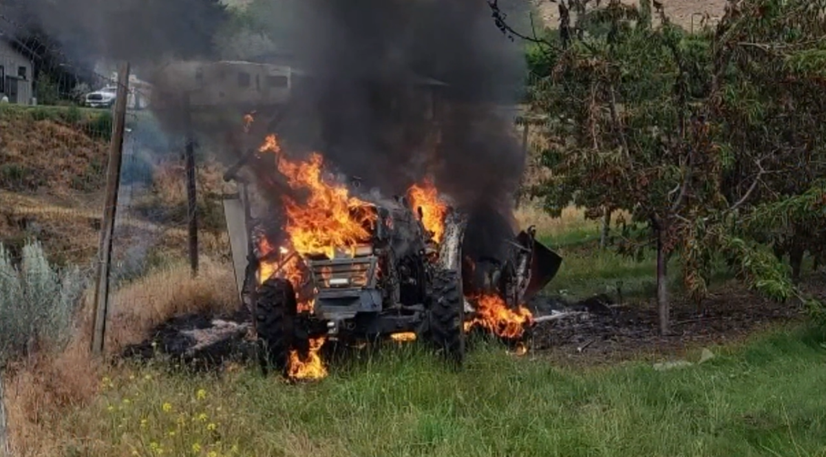 “Firefighters initial efforts were hindered by difficult access and high voltage power lines,” the department wrote. “Once the power lines were de-energized firefighters extinguished the fire on both the tractor and helicopter.”