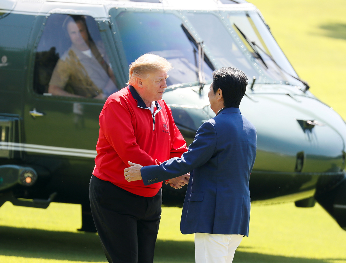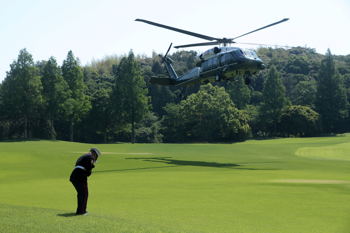 TOKYO, Japan (Reuters) - U.S. President Donald Trump on Sunday played golf with Japanese Prime Minister Shinzo Abe and presented a trophy to the winner of a sumo tournament, turning to personal diplomacy for the second day of a Japan visit shadowed by tough trade talk.