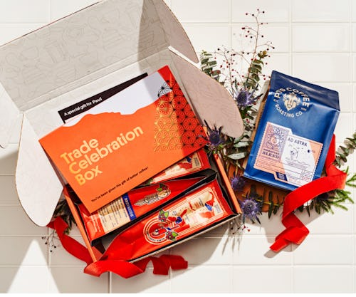 Trade's Celebration Box is a one-time gift that features a flight of three fresh coffees, plus an additional coffee matched to your recipient's tastes.