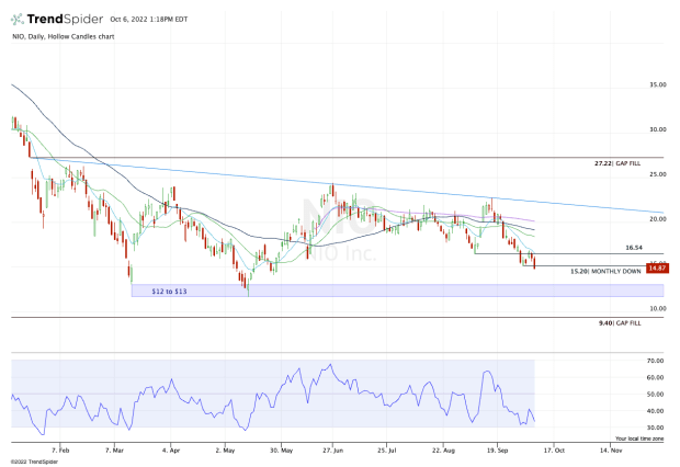 Should the stock regain $15.20, bulls really need to see Nio reclaim $16.50 and the 10-day moving average. That could open the door to the $18 to $19 range.