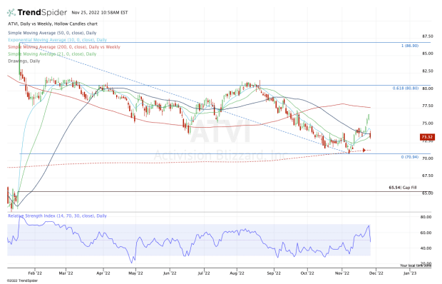 If Activision Blizzard stock loses $70, it could go on to fill the gap down near $65.50.