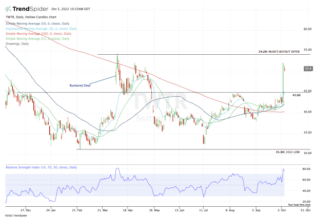 Twitter (TWTR) shares are back in the headlines as news continues to swirl around Tesla (TSLA) CEO Elon Musk, who is now going through with the $44 billion deal to acquire the company.