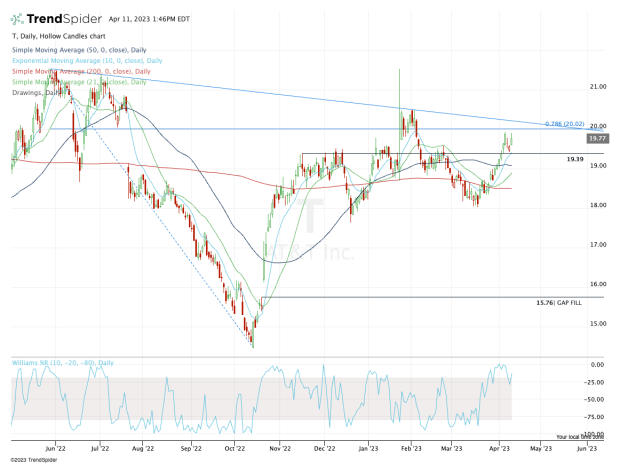 A move above $20 would set the stage for another test of downtrend resistance. If AT&T can push through this measure, it puts the 2023 high in play at $21.53, followed by a potentially larger upside move.