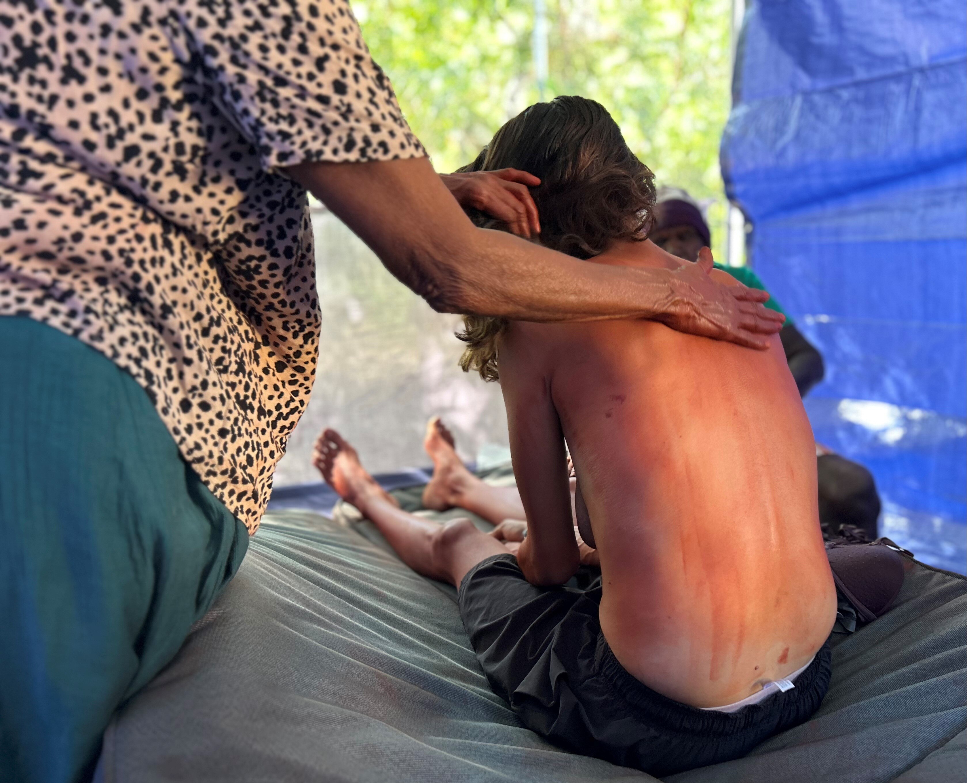 The ancient ritual, performed by the traditional Aboriginal healing group Jalngangurru, involves physical touch to help manage conditions from headaches to joint pain.