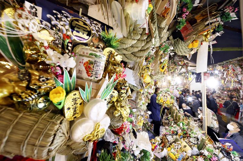 Each time a lucky bamboo rake, the featured item, was sold, sounds of handclaps echoed loudly, although the calls for business prosperity that usually accompany the transactions were restrained.