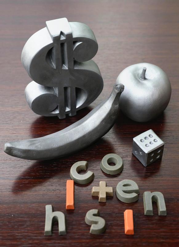 Some products made with kawara materials can be used as casual interior goods. They come in various unique shapes, such as a bananas, apples, letters of the alphabet, dice and a dollar sign.
