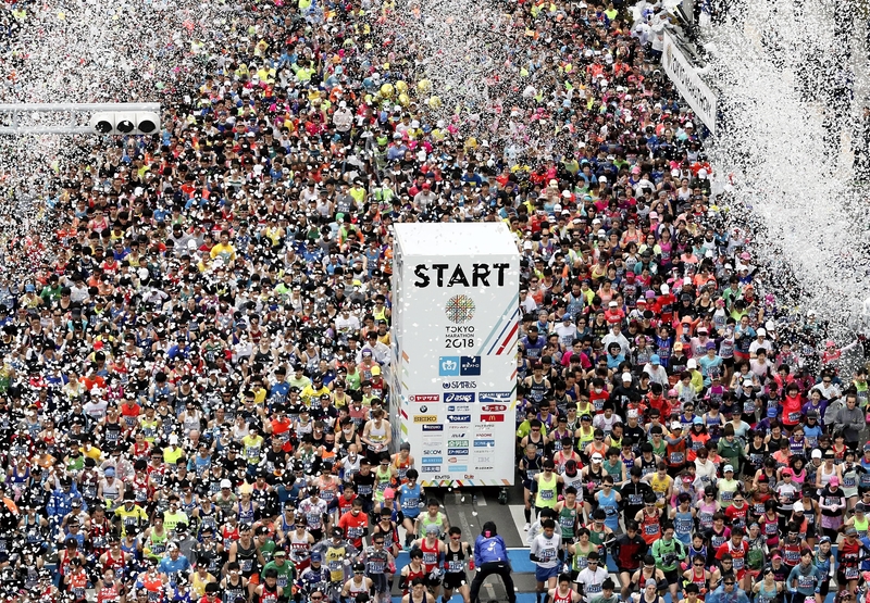 In the marathon, coorganized by The Yomiuri Shimbun and other entities, the wheelchair category starts at 9:05 a.m., while the general marathon race begins five minutes later.