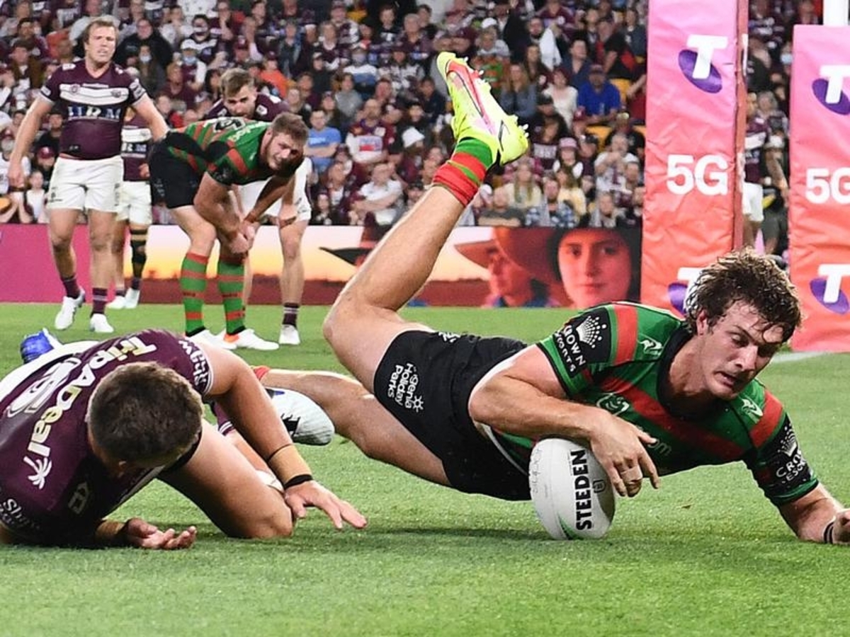 Manly's remarkable NRL season came to a screeching halt as South Sydney roared through to the grand final with a 36-16 win at Suncorp Stadium.