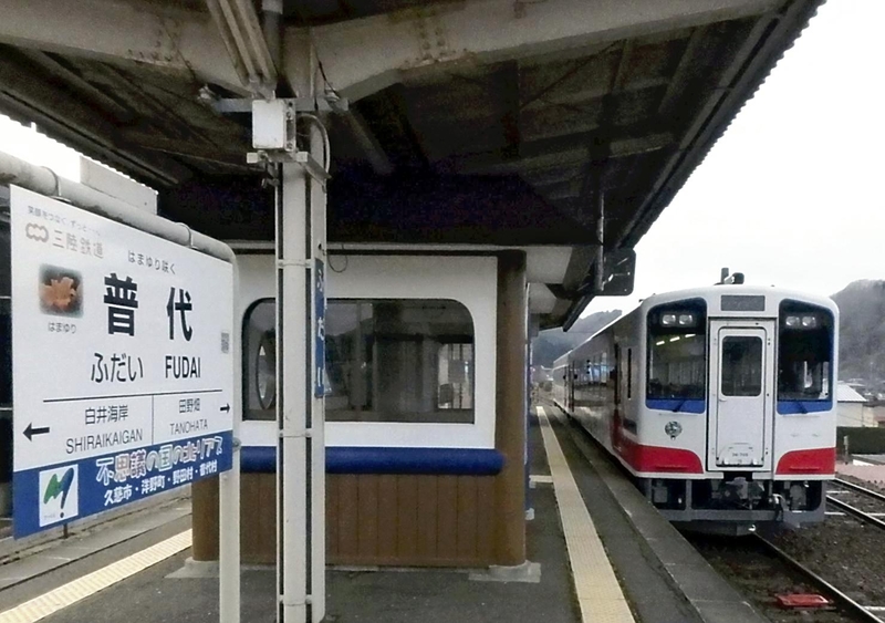 Sanriku Railway's Rias Line resumed train service last March after a hiatus of eight years. But the line was cut off again by the typhoon that hit the area last October. Train services were cut off over roughly 70% of the 163-kilometer line due to reasons including the collapse of roadbeds. Ichiro Nakamura, 64, president of Sanriku Railway Co., called for the central and local governments to provide support in carrying out restoration work, saying that "damage threatening human lives should be avoided as much as possible." He emphasized, "The railway is indispensable to the revitalization of the region." Service was resumed in February for the section between Tanohata and Fudai stations. The line resumed full service on March 20.