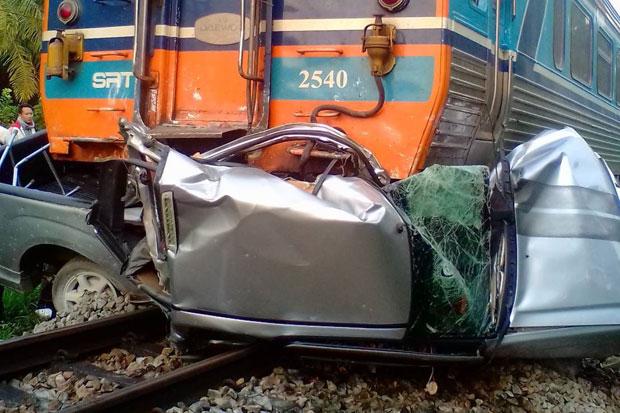 Police at Tha Chana station were informed of the crash at about 7.30am. It occurred at a level crossing without a barrier on a road between Ban Tham Khao Chawala and Ban Tham Namthip villages.