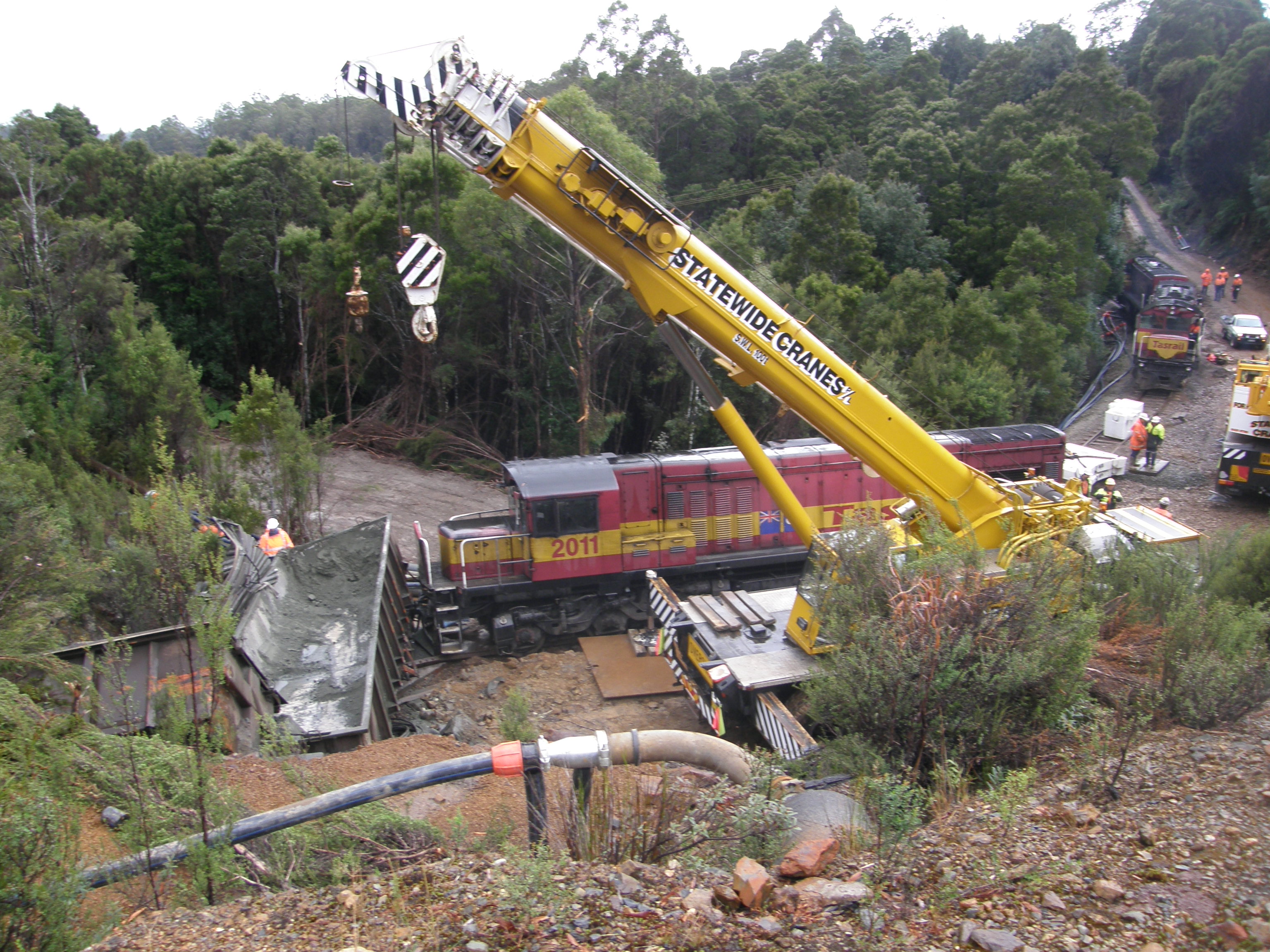 A rail had broken in a steep cutting near Renison Bell, between Rosebery and Melba flats on the west coast of Tasmania.