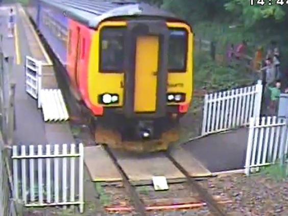 Video footage from Matlock Bath station in Derbyshire shows adults and children posing for pictures, sitting on the track and conducting phone conversations while walking along the line.