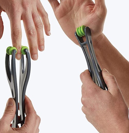 "Massaging the palm of your hands for five to 10 minutes also stimulates the ‘rest and digest’ system and releases a natural hormone called oxytocin that combats pain,” says Baez. This hand and finger massager lets you do this yourself whenever you like. A roller on one end massages the palm while the dial roller pincer side gives you an effective finger massage.