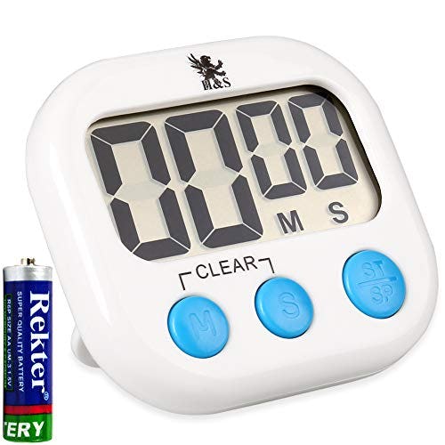 H&S Magnetic Digital Kitchen Timer - White Classroom Countdown Timer with Large LCD Digits Display & AAA Battery Included - Digital Cooking Timer with Loud Alarm & Magnetic Stand