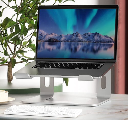 "Ensure your workstation is set up with your monitor, chair, and desk at proper heights that allow for good posture,” says Baex. Hunching over to look at a laptop screen will cause neck pain. Lift that screen up so you sit up straight when looking at it and you can prevent that. This laptop stand is an easy, affordable solution. It comes in nine colors and snaps apart so you can drop it in a travel bag.