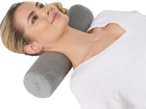 "People are forgetting the significance of stretching, eating a balanced diet, hydrating, and sleeping seven to eight hours per night,” says Baez. Try sleeping on this neck roll pillow. It is designed to encourage a therapeutic posture that heals and prevents neck back, and shoulder pain. You can tuck it between your knees or use it as a lumbar support pillow in a chair, too. It comes in four colors.