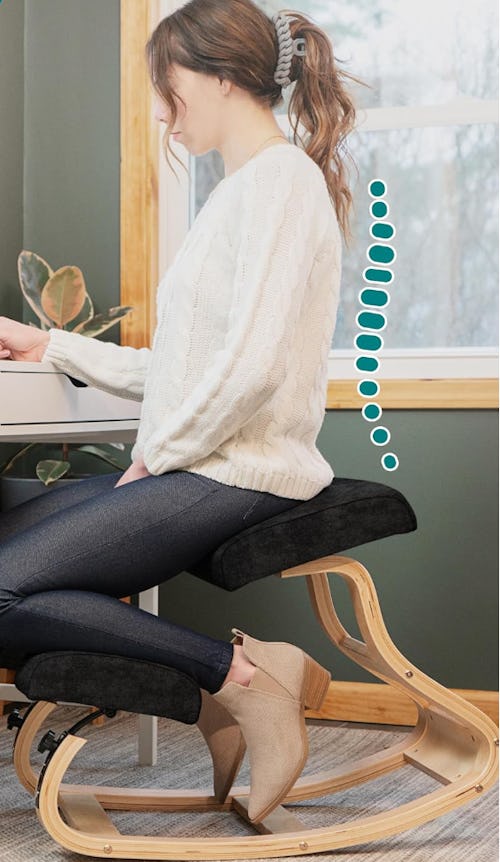 "An ergonomic chair and properly positioned monitor can also significantly reduce back strain," according to Deavours. But if that’s not in the budget, this desk chair cushion will fix many ills of a not-perfect desk chair. It’s breathable, softens the seat, keeps your coccyx bone from hitting a hard chair surface, and corrects your posture. It has a handle and a washable, removable cover.