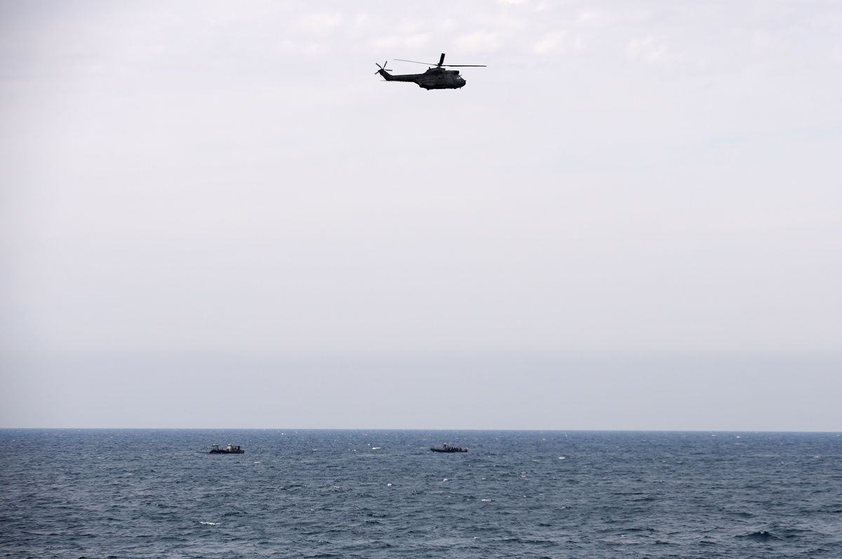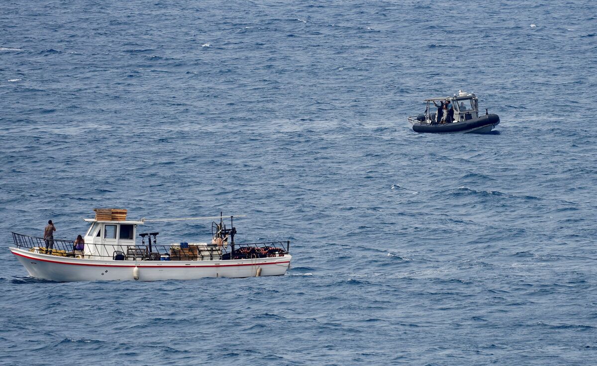 A fishing boat is pictured as search and rescue operations are underway after a small training plane crashed into the Mediterranean Sea off the Lebanese coast, in Halat, north of Beirut, Lebanon October 13, 2021. REUTERS/Issam Abdallah